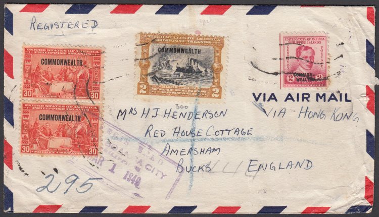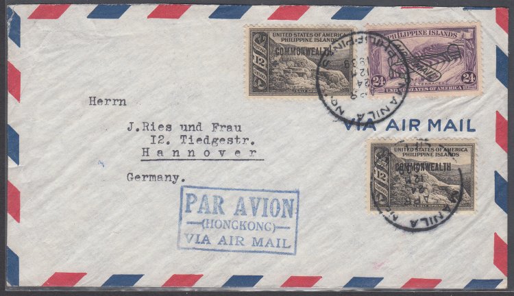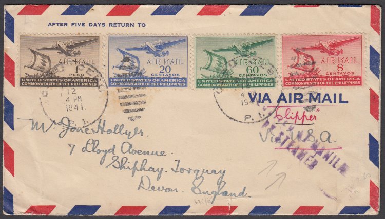 Manila. Used to Sydney, NSW, Australia. Two stamps missing on the front and