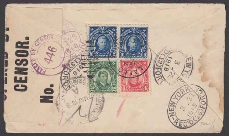 to front tied with duplex cancel. Manila 6 Apr 1912 duplex on reverse with