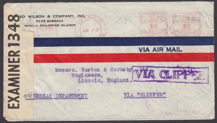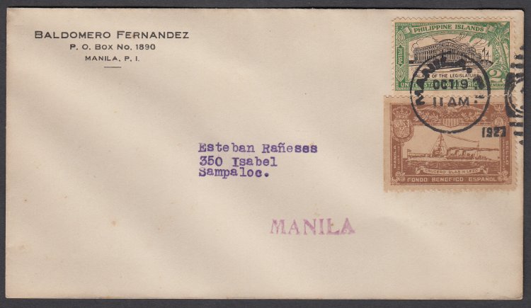 featuring French Couple. Used from Manila to Yokohama, Japan. Stamps affixed