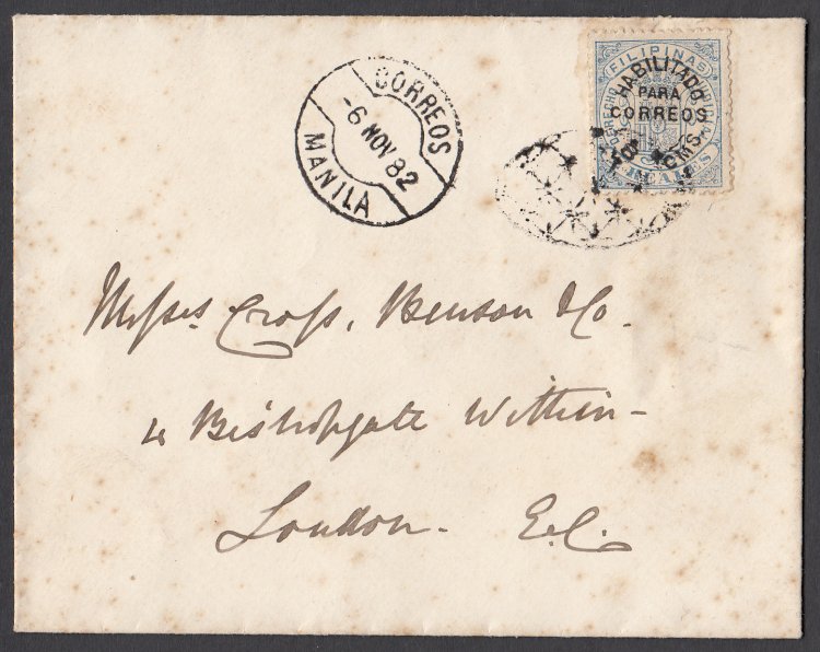 cover from Manila to London, England. Tied with Correos 24 January 1894