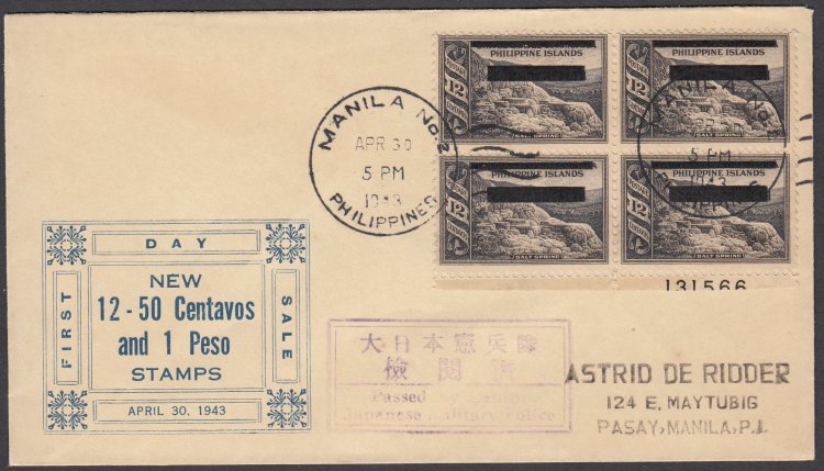 Day Cover tied with Manila No. 2 April 30, 1943 duplex cancels. Purple