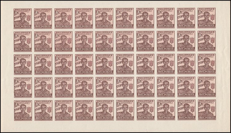 (OG, NH). Complete sheets of the 1948 Imperforate Boy Scouts issue. Post