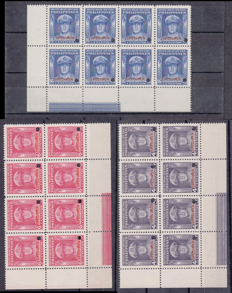 blocks with ABM Specimen overprints and security punch hole. Very scarce and
