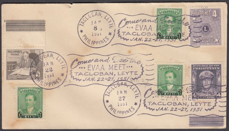 first and final dates) of the ‘Come and See the EVAA Meet, Tacloban’ slogan cancel (BPS-118). Some toning mainly