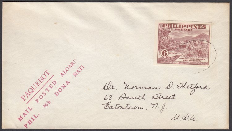 Aboard Phil. M/S Dona Nati’ handstamp on front and