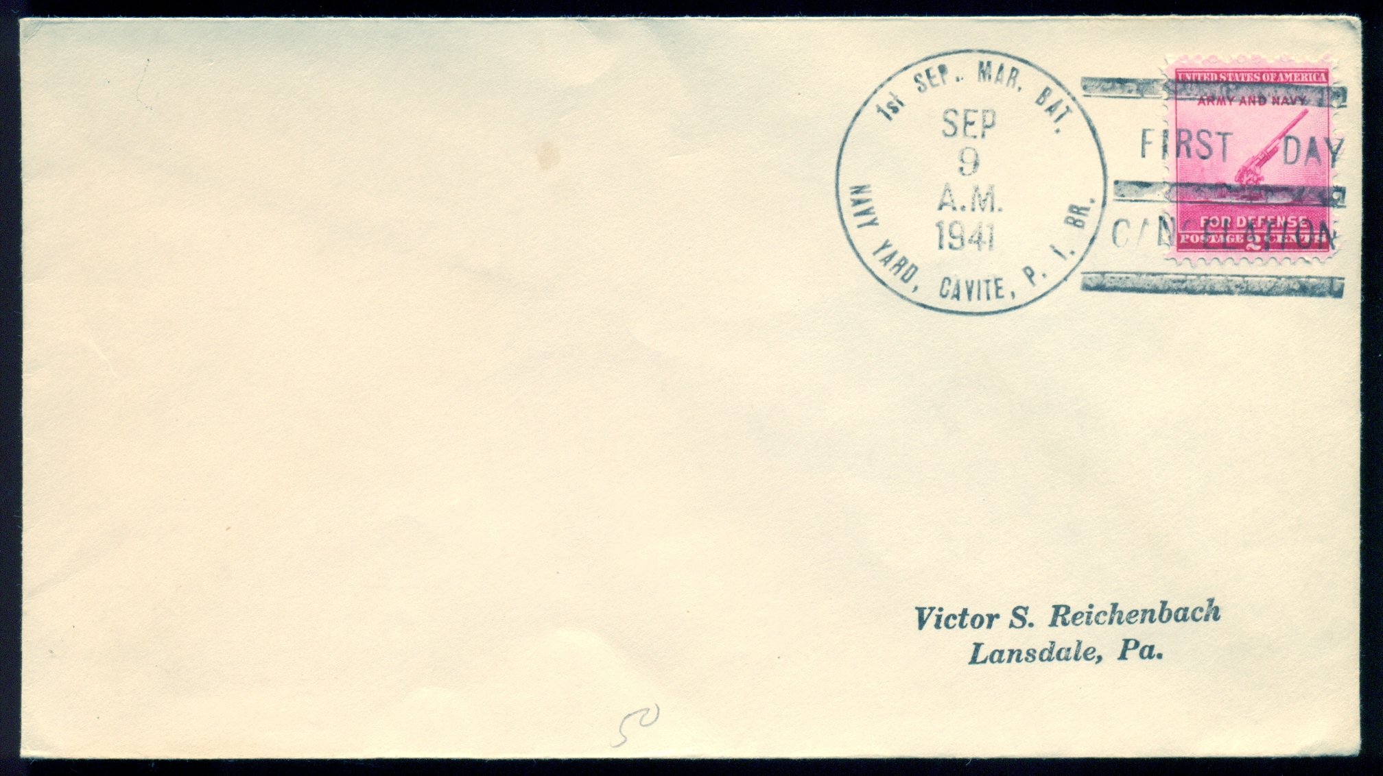 Navy Yard Cancel US stamp tied with 1st Sep. Mar. Bat. Sep 9, 1941 Navy