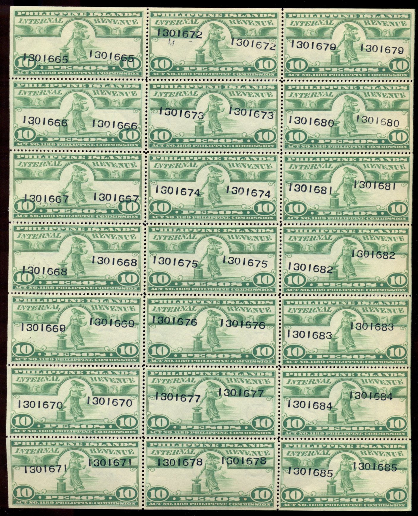 Sheet of 21. Minor creasing on two stamps at top. Nice looking sheet. |
