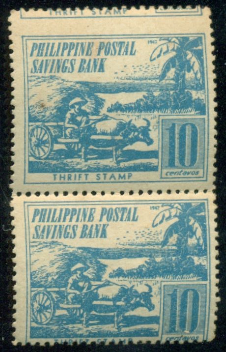 horizontal perfs causing jumbo stamp on top and bottom stamp cut into on