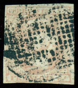 light Parrilla cancel. Vibrant colour. ‘A Roig’ Handstamp on reverse. One of