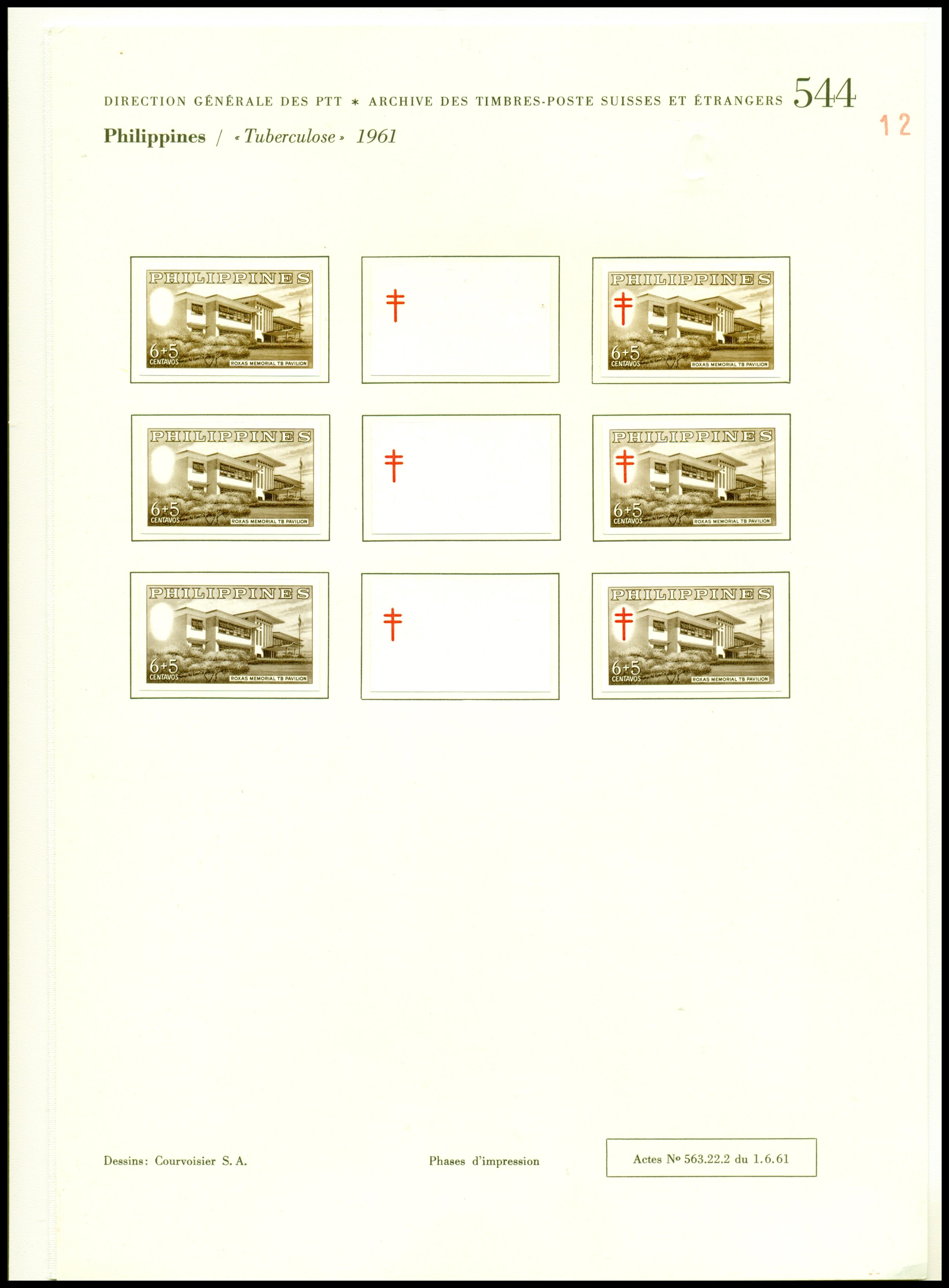 Progressive Proofs (4 for each value) from the Swiss Postal Archives on