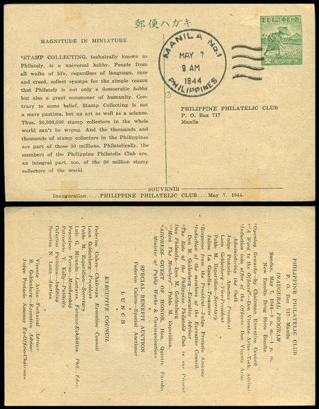 Philatelic Club inaugural program printed on reverse. Minor stain marks on