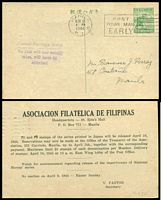 stamp on card. Unaddressed card with Society of Philatelic Rizalists purple handstamp