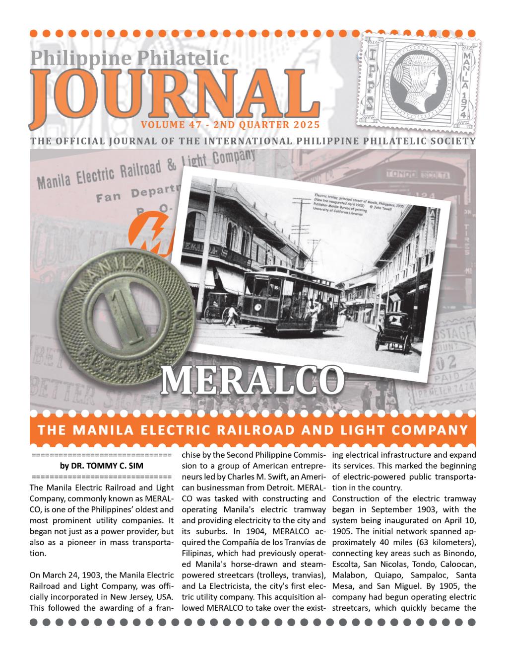 The IPPS publishes the all-color 28 page quarterly Philippine Philatelic Journal (PPJ) pertaining to all aspects of Philippine philately, including new issues, membership news, meeting announcements, mail sales, national and international auction results, general topics, and serious research on Philippine philately. IPPS sponsors regional and national meetings in the Philippines and United States. The IPPS is one of the sponsors of the philatelic exhibition PHILPEX in Manila. In 1996, the Eugene A. Garrett Award was created and is awarded to the Philippine exhibit judged the most outstanding at each APS eligible World Series of Philately show. IPPS encourages research by promoting articles and books published by its members. Published topics include serious research on the stamps and postal history of all periods. Refer to the Philippines Philatelic Book Store under Publications in this website for a list of member publications currently available to all collectors. This website's Featured Link: